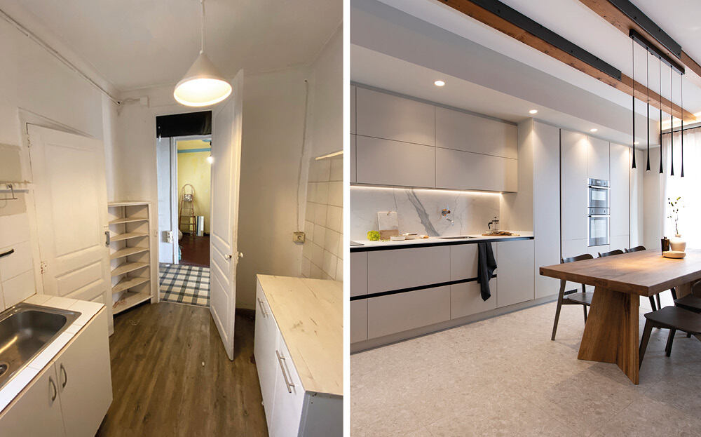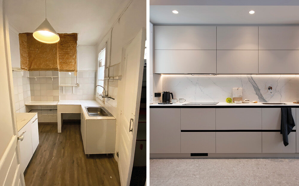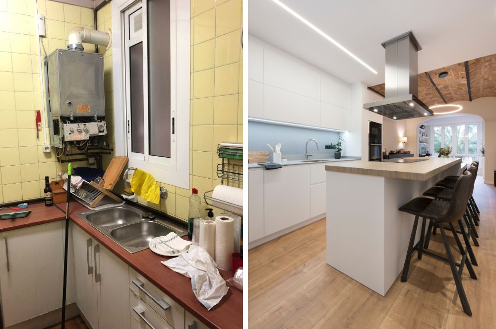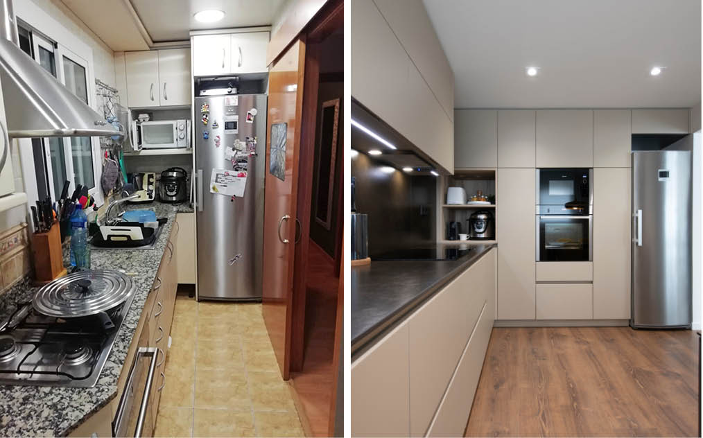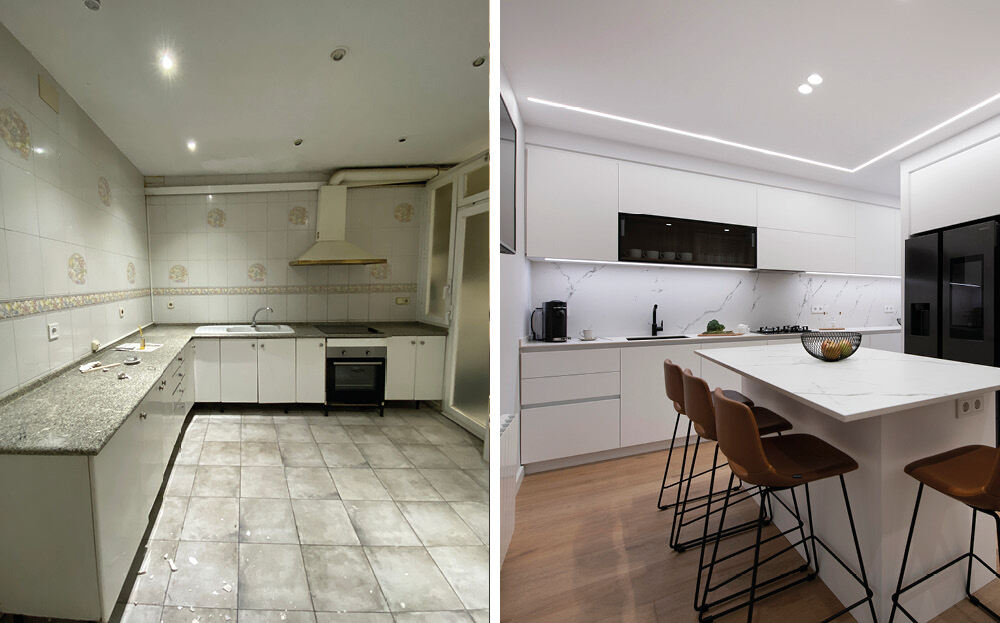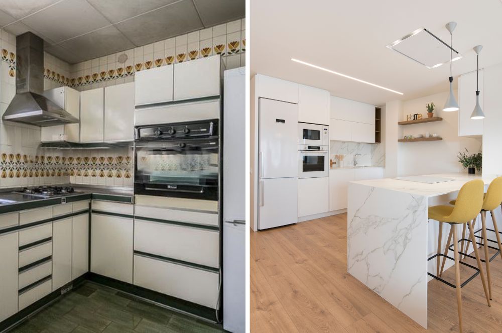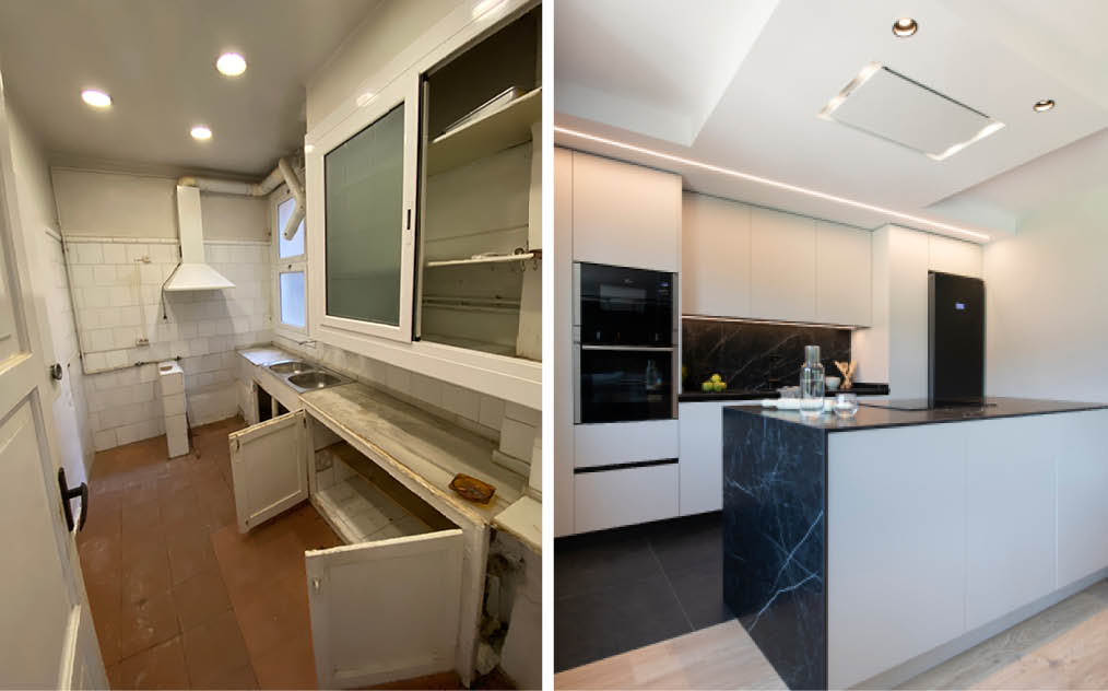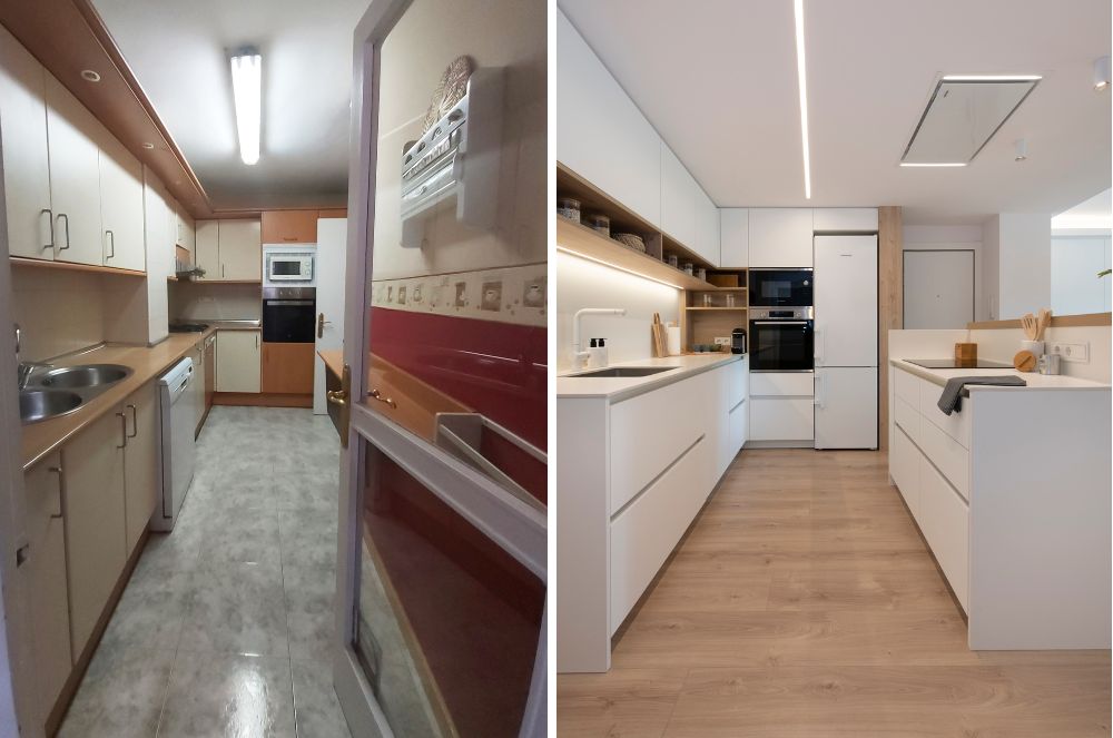 En este artículo queremos mostrar la transformación de algunas cocinas reformadas por Sincro, la mayoría correspondientes a proyectos de reforma integral de viviendas. Pisos antiguos, oscuros, con largos pasillos y estancias ciegas, además de una estética pasada de moda, que se han adaptado a las nuevas tendencias y necesidades de nuestros clientes. ¡Empezamos!
