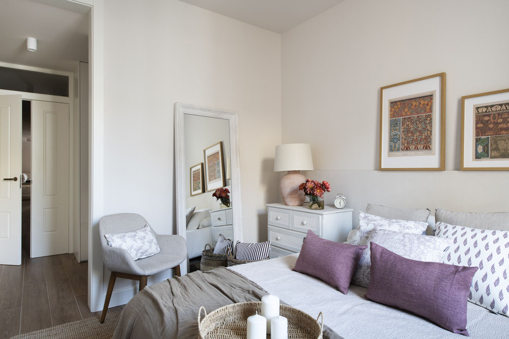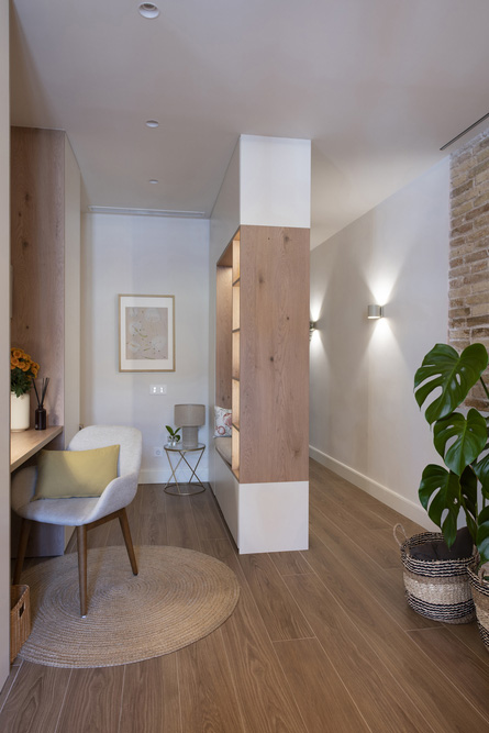 Finalmente, los detalles que se perciben en las imágenes reflejan el equilibrio entre materiales y la sensación de calma que transmite el espacio, dando lugar a un piso actual que se mantiene fiel al carácter y al alma originales de la vivienda.