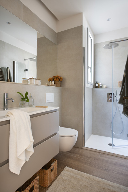 En la zona más privada, se han mantenido tres dormitorios y se han proyectado dos baños completos, situados en la parte del piso con menor entrada de luz, garantizando así privacidad y confort.