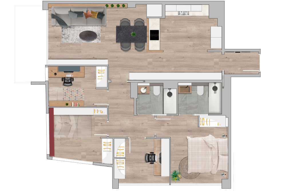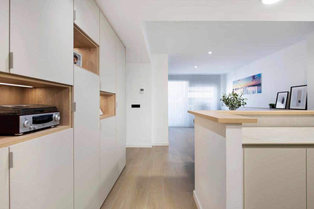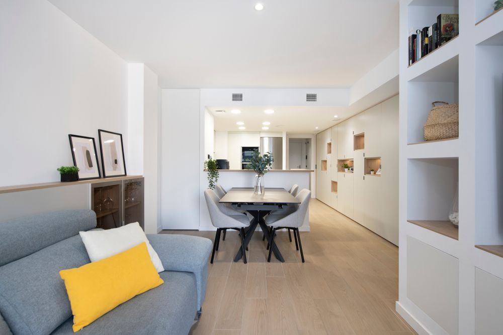 En este proyecto de interiorismo el objetivo era encontrar las mejores soluciones de mobiliario para optimizar al máximo todas las estancias de un piso de obra nueva.